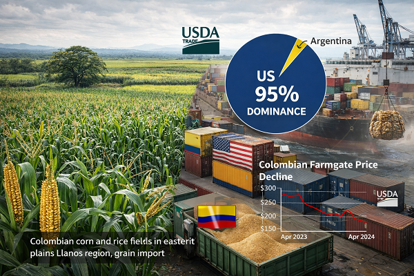 Colombia’s grain sector is heading into marketing year 2026/2027 under significant production pressure, with corn and rice output both forecast to decline as persistently low farmgate prices continue to discourage farmers from expanding or even maintaining their planted areas. A new Grain and Feed Annual report published on March 19, 2026 by the United States Department of Agriculture’s Foreign Agricultural Service in Bogota presents a comprehensive picture of a grain market that is becoming increasingly dependent on imports to feed its livestock and human population, even as domestic producers struggle with production costs that in many cases now exceed the prices they can obtain at market.