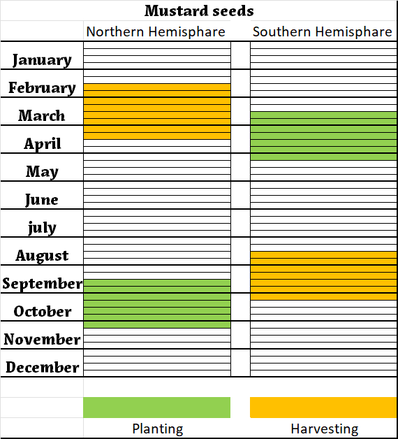 Planting and Harvest Periods of Winter Mustard seeds
