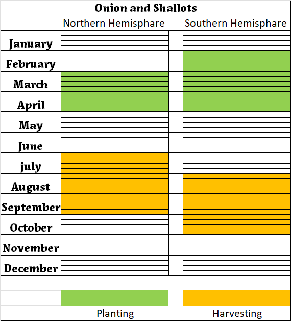 Planting and Harvest Periods of Spring Onions and shallots dry (excluding dehydrated) raw