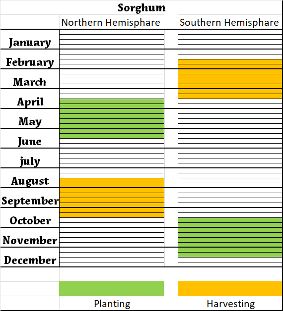 - A crop calendar showing the planting and harvest times.