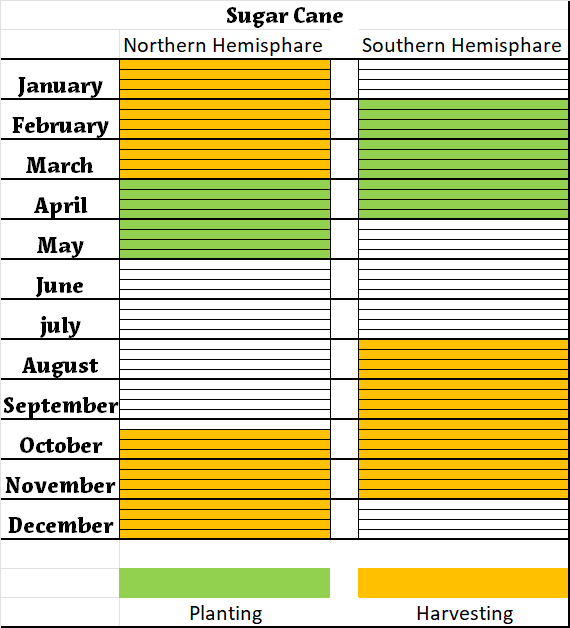 Planting and Harvest Periods of winter Sugar cane