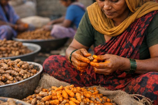 Spot markets in key producing and trading centres are marking time after the strong rally of the past year. NCDEX turmeric futures are hovering around recent highs near EUR 188–192/100 kg equivalent, while physical export-grade dried fingers from Telangana and organic product in New Delhi are stable in euro terms. Light-to-moderate rain forecasts for parts of Telangana over the next few days could briefly slow arrivals but are not yet a major crop threat. Overall, the market remains underpinned by structurally tight stocks and firm export interest, but the near-term tone is one of consolidation.