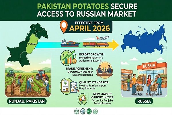 The lifting of phytosanitary restrictions—originally imposed in May 2025 over pest and disease concerns—marks the resolution of a key non-tariff barrier that had effectively shut Pakistan out of the Russian potato market. Government agencies including the Ministry of National Food Security & Research, the Department of Plant Protection, TDAP, PHDEC and Pakistan’s Trade Mission in Moscow coordinated pest-status documentation and compliance to secure this approval. The move fits a broader strategy of export-market diversification and deeper agri-trade ties with Russia.
