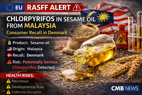 🇪🇺 RASFF Notification: Chlorpyrifos in Sesame Oil from Malaysia – Consumer Recall in Denmark