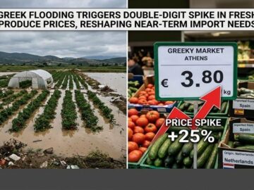 Flood-related supply shocks have driven a sharp 10.45% month-on-month jump in Greek fresh fruit and vegetable retail prices in March 2026, even as headline supermarket inflation edged down 0.15% from […]