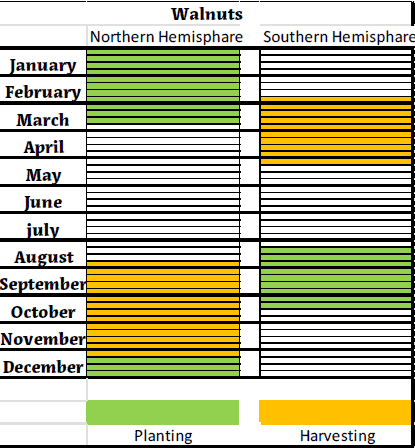 Planting and Harvest Periods of Walnuts in-shell
